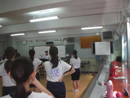 音楽部は、音楽室で発声練習をしています。一区切りがつくごとに上級生が下級生に「こうしたほうがいいよ」と、アドバイスを送っています。良い光景です。