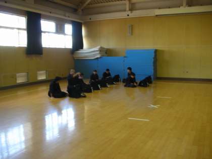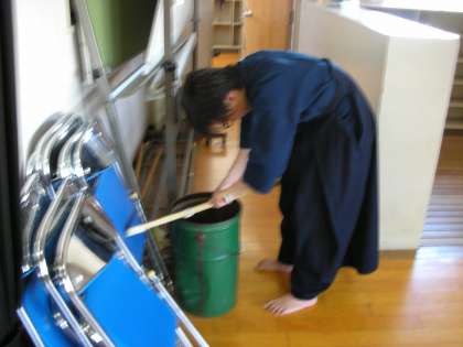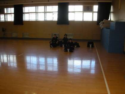 まず、道場の清掃から行います。清掃が終わり、練習を始める準備をしています。