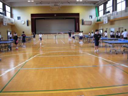 卓球部は、午後から体育館で練習をしています。午前中のバレーボール部と入れ替わっての活動です。