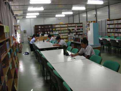 図書館は、11時までの間、自習室として開放されています。このときは、4名が参加していました。本を読んでいる人、宿題をしている人等、様々です。