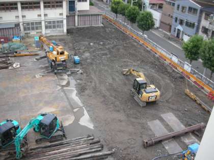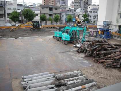 柵の防護シートが巻きあげられているので、外から中の様子が良く見えます。