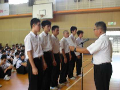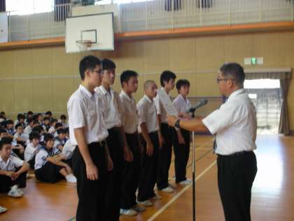 剣道部男子の表彰式です。