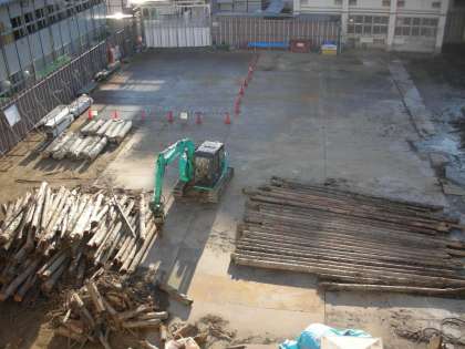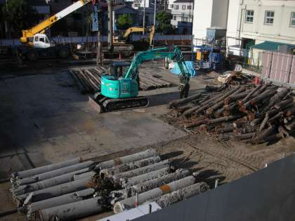 先週の土曜日(9月1日)も工事が行われました。引き抜かれた『杭』が並べられています。順調です。