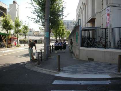 今日も管理作業員さんが、生徒の登校を見守りながら、数学路の清掃をしてくださっています。