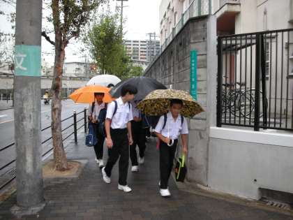 雨の日は、傘をさす分、荷物が多くなります。それでも生徒たちは、「アメニモマケズ…」の気持ちで、登校してきます。