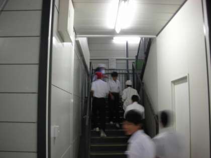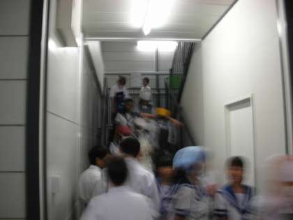 給食当番の人は、エプロン等を身に付け、急いで手を洗いに行きます。