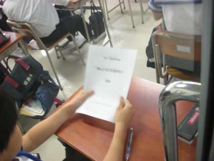 2年生は教室で、六稜祭で実施する演劇の台本を製本しています。