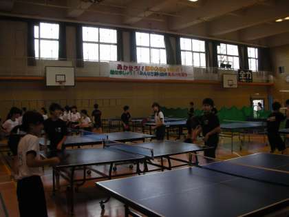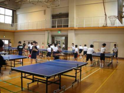 卓球部は、体育館で練習をしています。