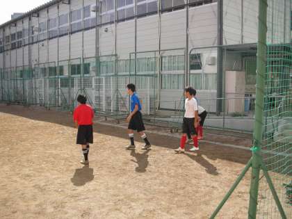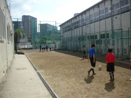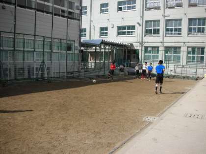 サッカー部は、校内の狭いスペースで練習しています。