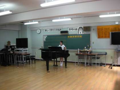 音楽室、教室、階段の踊り場と、それぞれの練習場所を見つけて頑張っています。