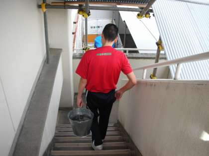ぞうきんがけをした後のバケツを持って、3年生が率先してあと片付けに向かいました。現在は工事中なので、格技室から水道のあるところまでは、少し離れているのです。それを3年生が率先して行っている姿を見て、改めて「すばらしい」と思いました。