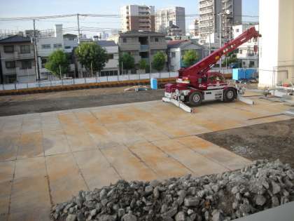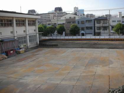 真ん中と下の写真は、校長室から撮影したものです。工事現場には、ほとんど資材が置かれていないので、広々としています。美しい現場です。