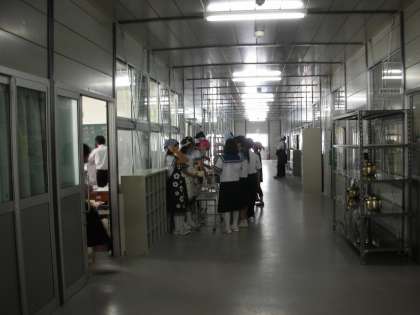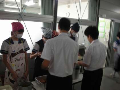 先生や配膳員さんは、食缶等がすべて当番が持っていくまで、ワゴンの前で待っています。