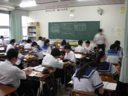 3組は、山川先生の数学です。プリントの問題をしています。生徒同士が教えあいをしています。