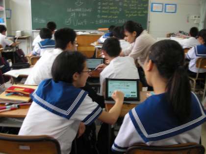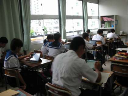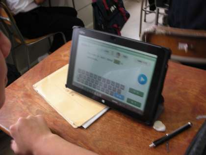 教材の中で、クイズ形式の問題に取り組んでいます。