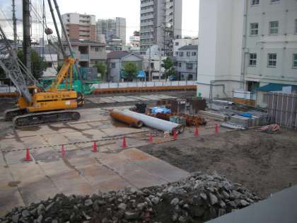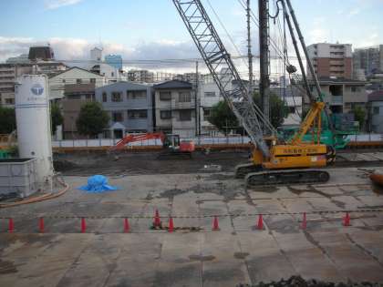 今日も工事が行われました。昨日は、地質の調査が行われたようです。今日は、大きな重機の場所が変わっています。どのような作業をしたのでしょうか?