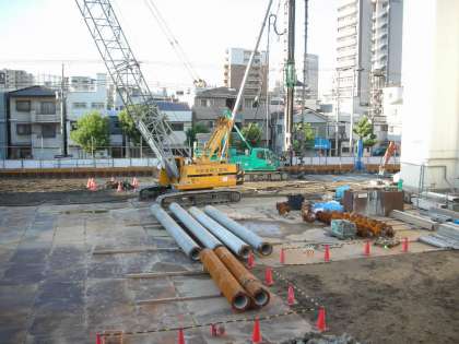 工事現場にできた水たまりの水をかなり蒸発させてくれました。太陽の力は大きいですね。