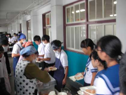 教室でも牛乳や巨峰を配っています。