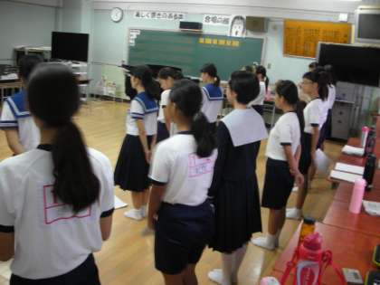 音楽部は、音楽室で音合わせをしています。全員が同じ方向(目標)を向いて練習をしています。
