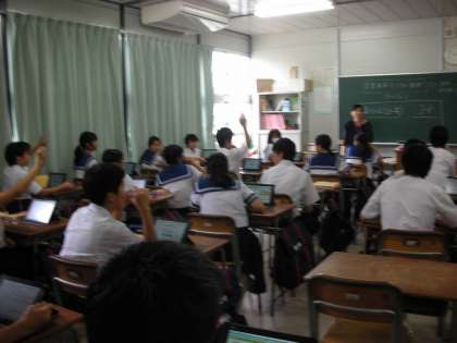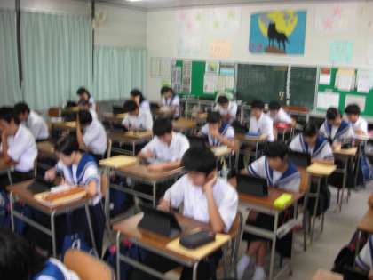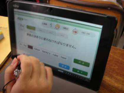 英語が得意な人も、苦手な人も、手にしたタブレットに夢中になっています。