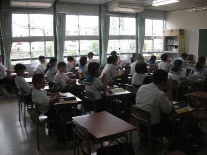上の写真は、1年1組の社会(歴史)の授業の様子です。