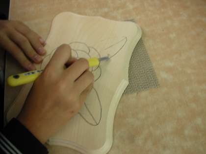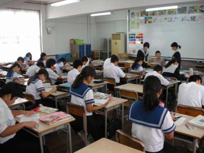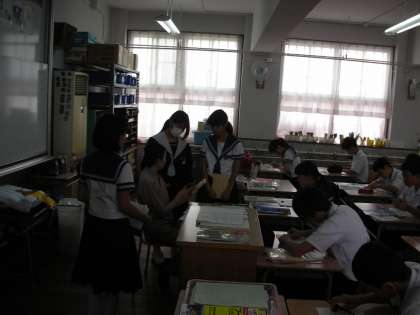 美術室では、2年1組の生徒たちが一生懸命実習をしていました。