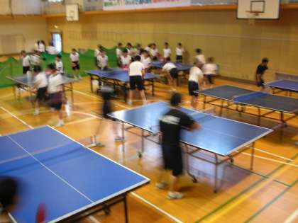 写真は、卓球部の練習風景です。
