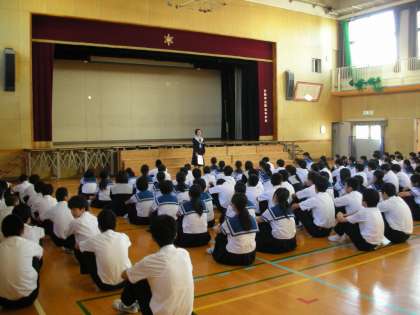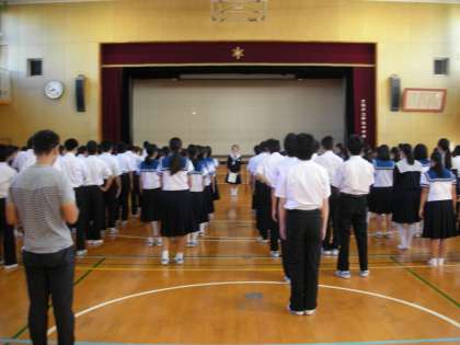学年代表が指揮をとります。生徒の力で、このような活動がしっかりとできるようになることは、とても大切なことです。