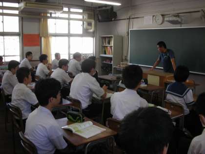 1組は、担任の長畑先生が連絡事項を話しています。