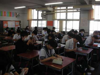 2組、3組は、読書をしています。一生懸命各自の本を読んでいます。さすが、3年生ですね。