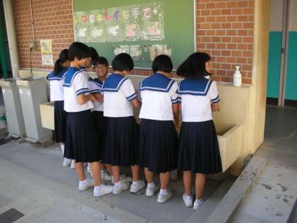 給食の準備が始まりました。