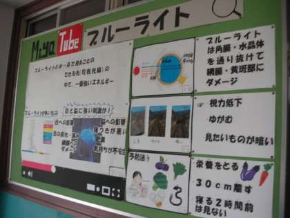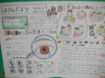 保健室の掲示板には、いつも手作りの掲示物が展示されています。