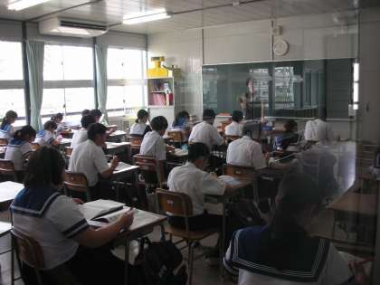 担当の古川先生が教材を朗読しています。生徒たちは、教科書を目で追いかけています。