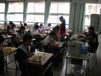 1年2組の給食の様子です。