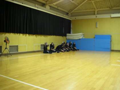 格技室から、気合の入った大きな声が聞こえてきます。工事の重機の音をかき消すほどの大きさです。