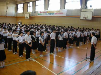 今日は火曜日ですが、1週間の初めの日ということで、全校集会が行われます。