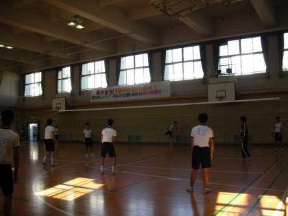 バレーボールの試合をしています。男子は、なかなか厳しい(強い)サーブが決まることもあります。