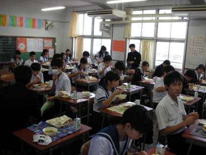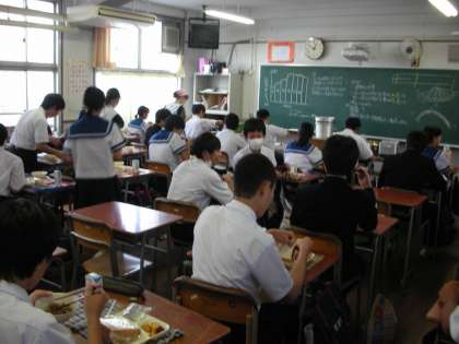 すでに、「いただきます」が終わり、みんなおいしそうに食べています。
