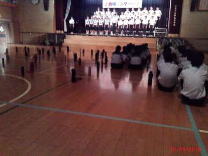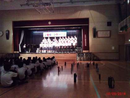 トップバッターは、1年2組です。自由曲は、「With you smile」です。