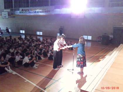 金賞は、1年3組でした。3クラスが本当に僅差だったそうです。それぞれのクラスが頑張ったので、差がつかなかったのでしょう。レベルの高いコンクールでした。みんなよく頑張りましたね。