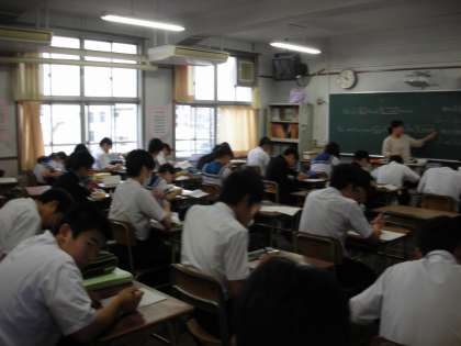 3年2組の英語の授業です。田嶋先生が構文の説明をしておられます。