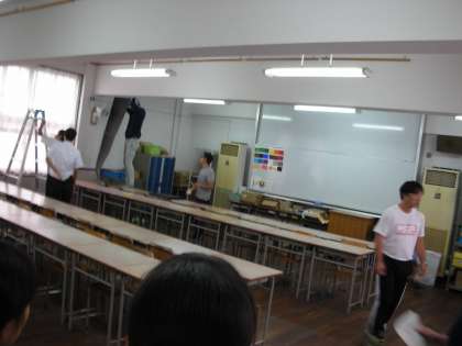 被覆室でも、美術室でも係の生徒と先生が汗を流しながら、準備をしています。