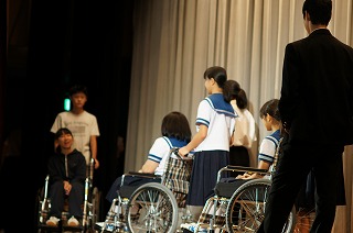 実際に行った『車いす体験学習』を通じて学んだことを劇の中にも取り込み、見事に演じていました。