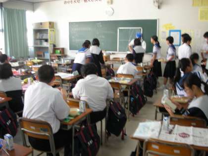 1年3組の給食の様子です。