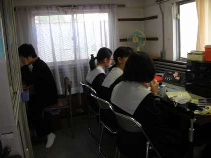 放送室の様子です。 今日の当番の人が、食事をとりながら音楽をかけています。 ありがとう。