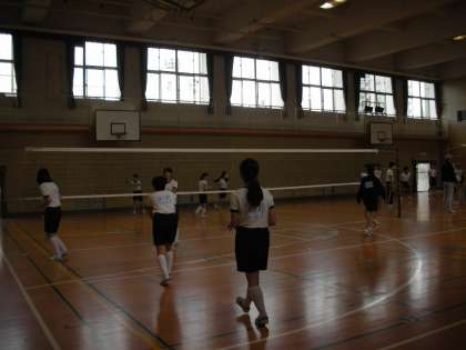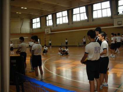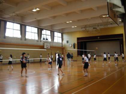 川西先生と竹岡先生から、バレーボールの指導を受けています。