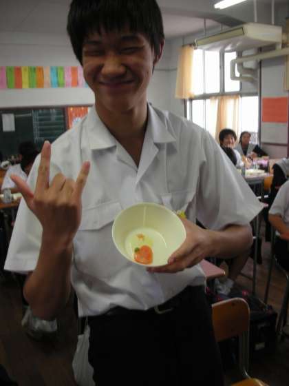 なんと、Sくんがラッキーニンジンを射止めました。思わず、喜びのポーズ。