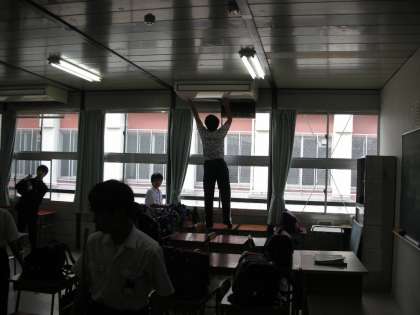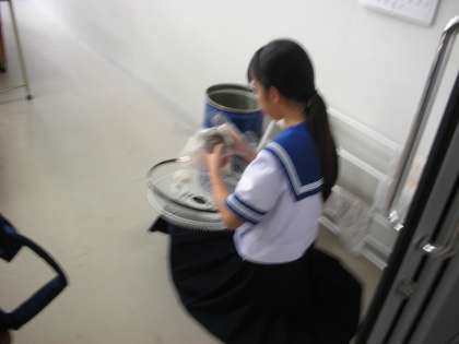 本日は、大清掃の日です。エアコンのフィルターや扇風機の羽も洗います。