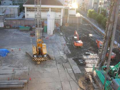 工事現場には、まぶしい朝日が差し込んでいます。今は、気温が低くなっていますが、24度くらいまでは、上昇するようです。