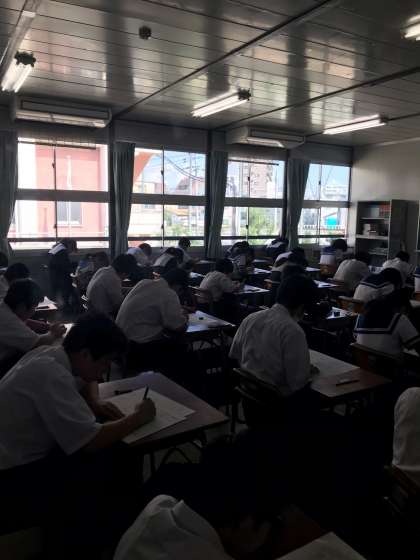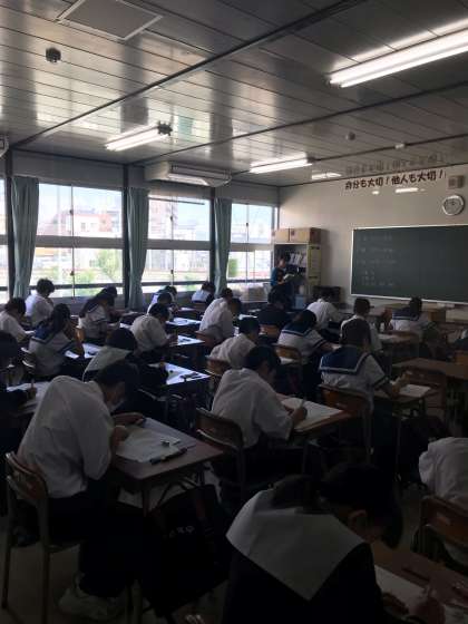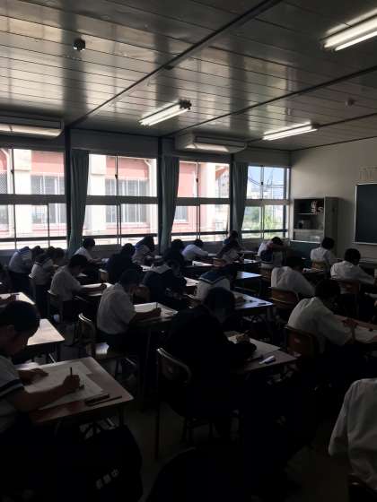 1年1組、2組、3組の順です。当然のことですが、どの学年もどの教科も、テストにのぞむ姿勢は真剣そのものです。しかし、その一生懸命な姿は、とってもかっこいいですね。